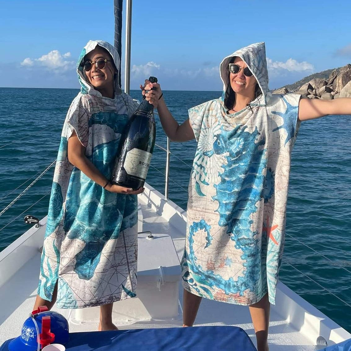 Ich habe mir vor Kurzem einen individuellen Poncho für meine häufigen Bootsausflüge vor der Küste Floridas anfertigen lassen, und ich kann Ihnen sagen, er hat alles verändert. Einfach perfekt. Ihn nach einem Bad im Meer überzuziehen, fühlt sich wie eine warme Umarmung an, und er trocknet so schnell! Keine feuchten Klamotten oder kühle Brisen mehr für mich. Und durch die individuelle Note fühlt er sich so persönlich und besonders an. Jedes Mal, wenn ich ihn trage, bekomme ich eine Flut von Komplimenten von anderen Bootsfahrern. Es ist nicht nur ein Poncho, es ist ein Statement-Piece. Ich kann einen individuellen Poncho nur wärmstens empfehlen. Segeln Sie weiter und bleiben Sie fabelhaft!“